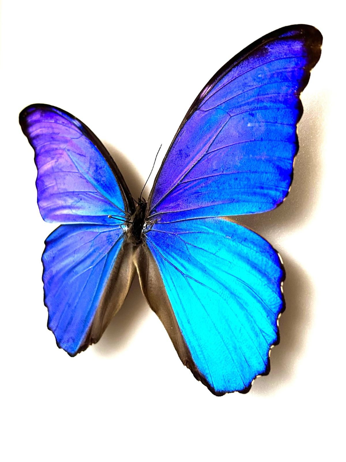 Morpho Didius – Papillon Naturalisé bleu métallique du Pérou – Spécimen Exotique rare de Collection Entomologique