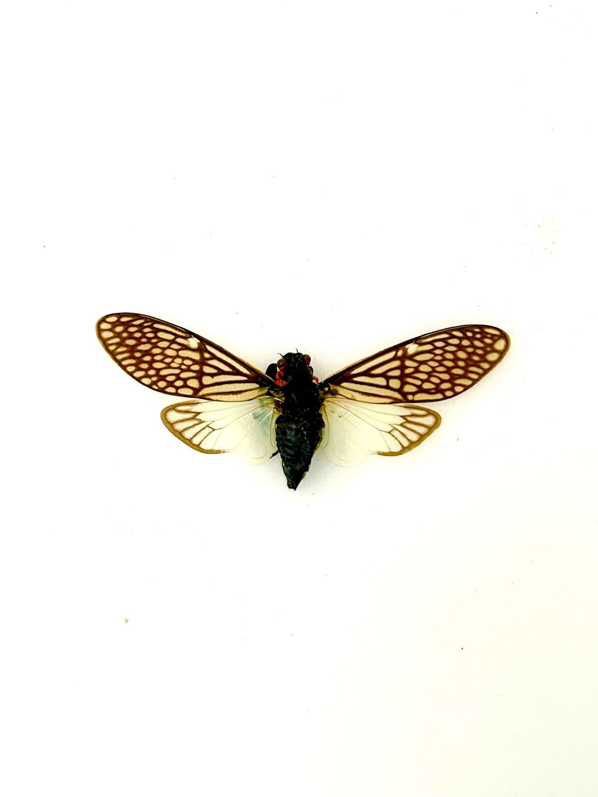 La Thailainga Binghami est une cigale tropicale à l’esthétique délicate. Tout d’abord, elle se distingue par son corps noir contrasté et ses ailes marbrées, allant du marron foncé au blanc translucide. Ensuite, ce jeu de nuances lui donne une allure raffinée et mystérieuse.